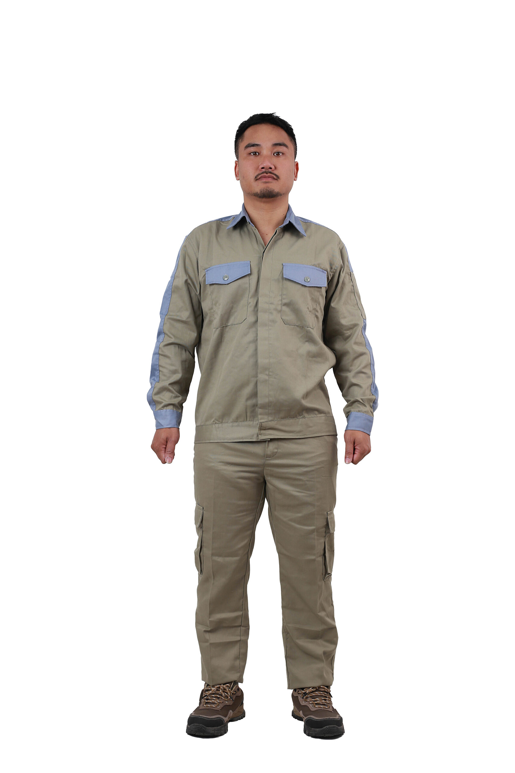 Mã sản phẩm: GP-M31 Chất liệu: Vải kaki liên doanh 3.1 Màu sắc: xi măng phối tím nhạt Miễn phí In logo + vận chuyển Tính năng : Đảm bảo an toàn cho người lao động với khả năng thấm hút mồ hôi ,hạn chế đến 95% các tác nhân gây hại ngoài môi trường như: nắng nóng, tia UV, nhiệt, bụi bẩn …tạo cảm giác thoải mái khi làm việc giúp nâng cao năng suất lao động Ứng dụng : Công trường xây dựng, công trình giao thông, phân xưởng nhà máy , xí nghiệp… Size:  5 – 6 – 7 – 8 – 9