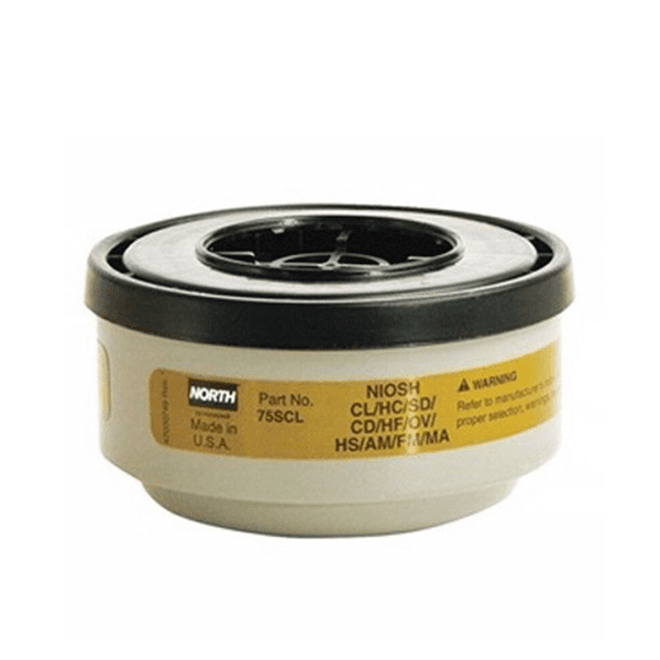 Mã sản phẩm : 75SCL Nhà sản xuất : North – Honeywell Xuất Xứ : Mỹ Mô tả : Phin lọc khí độc 75SCL được thiết kế để chống lại hơi hữu cơ, clo, clorua hydro, sulfur dioxide, hydrogen sulfide (thoát), hydrogen fluoride, chlorine dioxide, ammonia, methylamine và formaldehyde. Phin lọc tương thích với tất cả các mặt nạ North. Màu sắc :  Đen xám Chất liệu :  Than hoạt tính Tiêu chuẩn : NIOSH
