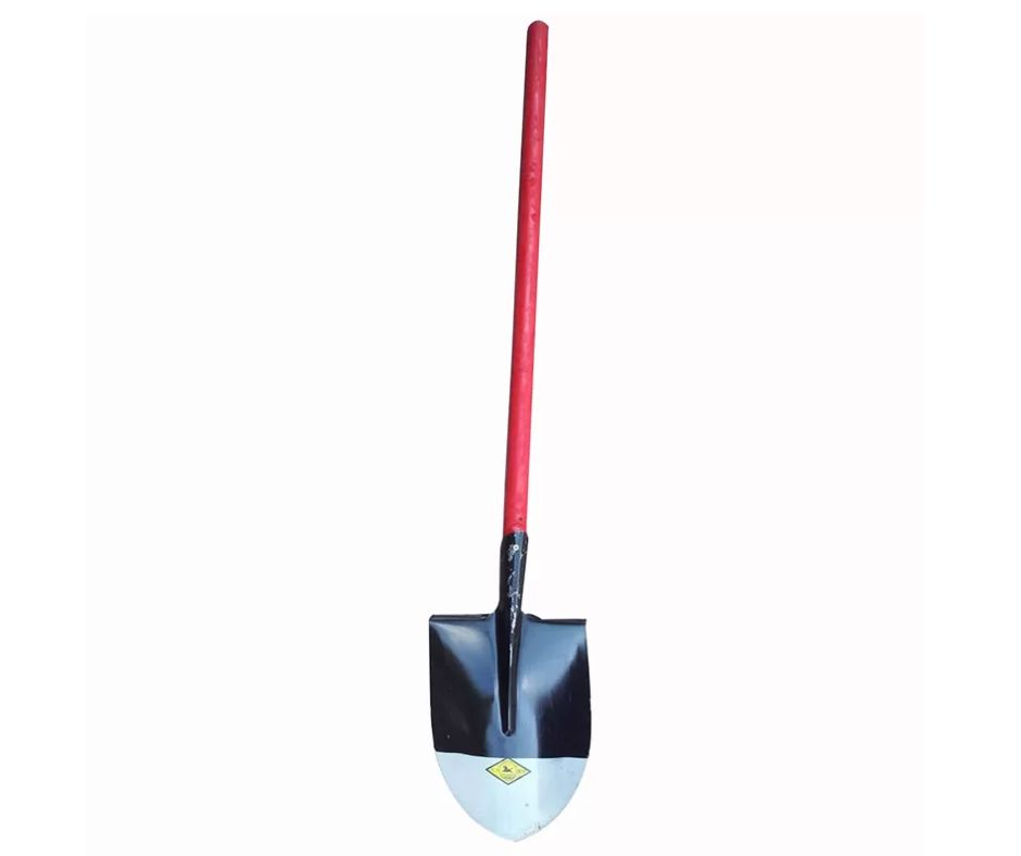 Xẻng chữa cháy sơn màu đỏ, cán gỗ dài 1,2m.
